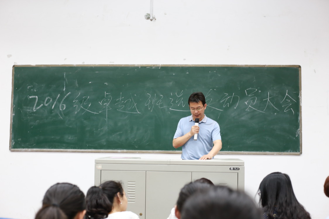为了贯彻落实习近平总书记教师节重要讲话精神,积极推动教师教育综合改革步伐,扎实推进kaiyun体育官方网站入口登录“卓越中学教师培养计划”进程,kaiyun体育官方网站入口登录于5月13日晚7时在05203教室举行了2016级卓越班选拔动员大会。学院党委书记孙兆奇、院长段江燕,党委副书记吴建军,副院长芦荣胜、王祎玲、张林静,院团委书记石菊红、卓越指导教师高瑞如、周艳华、阴环等老师共同出席了本次大会,卓越一班全体成员及16级本科生共同参加了此次会议。会议由副院长卢荣胜主持。