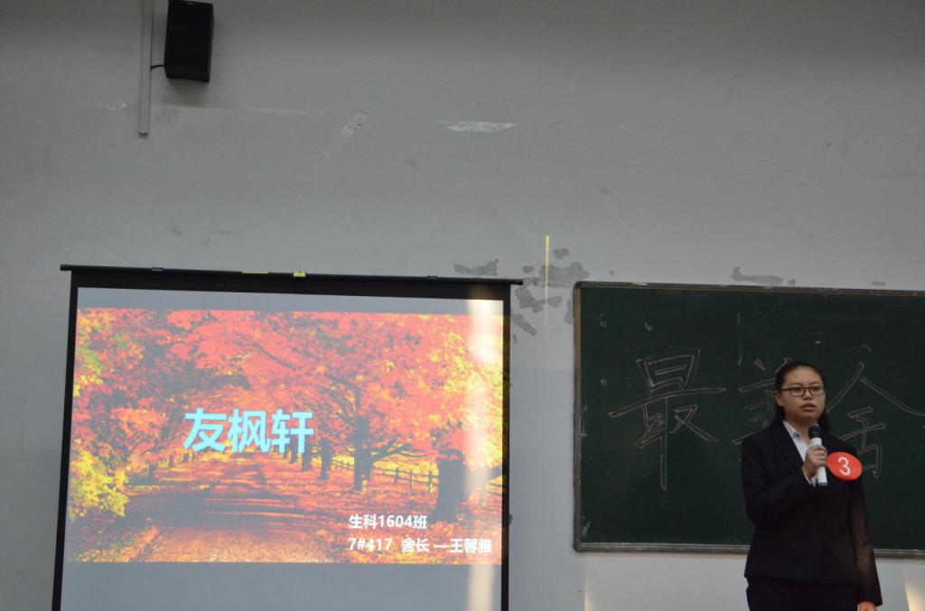 比赛最后,吴老师对本次大赛进行总结,他讲到,舍风建设对于同学们的身心健康和成长学习有很大促进作用,舍长在其中起着至关重要的作用,一个有着良好舍风的宿舍需要有和谐的人际关系、宿舍同学的成长轨迹积极向上、宿舍内部环境和谐温馨等几个基本条件,希望各宿舍舍长再接再厉,做好宿舍文化建设工作。毛海霞老师对本次比赛参赛同学的表现也进行了精彩的点评,毛老师首先对各位参赛选手对此次大赛做出的努力表示肯定,并提醒大家要以本次的宿舍风采展示激励自己,维护宿舍内部团结,营造和谐、温馨的宿舍环境。